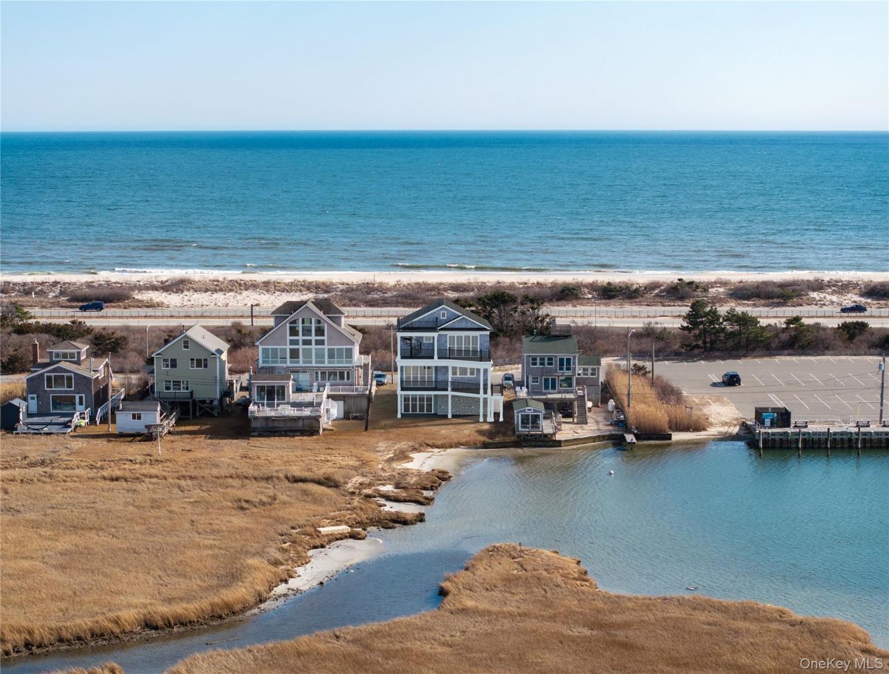 Welcome to 2 Cottage Walk in Gilgo Beach. Scheduled for completion in May 2026, this newly constructed coastal residence offers a rare opportunity to own an exquisite retreat just one hour from New York City. Set within Gilgo Beach, an intimate enclave of only 55 homes, the property occupies a unique position between the Atlantic Ocean and the Great South Bay-and is the only residence in the community to feature a private bay beach. With the ocean just steps away and direct bay access from the backyard, the setting delivers a level of privacy, natural beauty, and waterfront access that is virtually unmatched on Long Island's South Shore.Thoughtfully designed to deliver the ultimate ocean-to-bay lifestyle, this three-story coastal home is perfectly positioned on a 60x167-foot lot and features four spacious bedrooms and three beautifully appointed bathrooms, with sweeping views of both the Atlantic Ocean and the Great South Bay. The carefully planned layout begins with a lower level that includes a garage and unfinished space brimming with potential.The first floor is dedicated to open-concept living and entertaining, where abundant natural light and water views provide a striking backdrop for both everyday living and gatherings. Anchored by a fireplace and surrounded by decks that create seamless indoor-outdoor flow, this level also includes one bedroom and a full bathroom, offering flexibility for guests or multigenerational living.The second floor is reserved for the remaining three bedrooms and two bathrooms, including a primary suite with a private ensuite bath. Private decks and tranquil views offer peaceful retreats filled with coastal breezes and sunset skies.Built with long-term comfort, efficiency, and durability in mind, the home features radiant heating, central air conditioning, a full-house water filtration system, an architectural-grade roof and siding, and low-maintenance Trex decking. The property is further enhanced by a brand-new drilled well and an innovative wastewater septic system, offering modern efficiency and peace of mind.Mornings begin on the back deck with coffee as boats glide through the bay toward the inlet, the water reflecting the sky like glass. Just steps away, the Atlantic Ocean invites sunrise walks along the shore, surf sessions at one of New York's premier breaks, or quiet moments collecting beach glass. Afternoons are equally effortless-spent with a book in the sand, watching dolphins or humpback whales offshore, casting for striped bass, or kayaking through