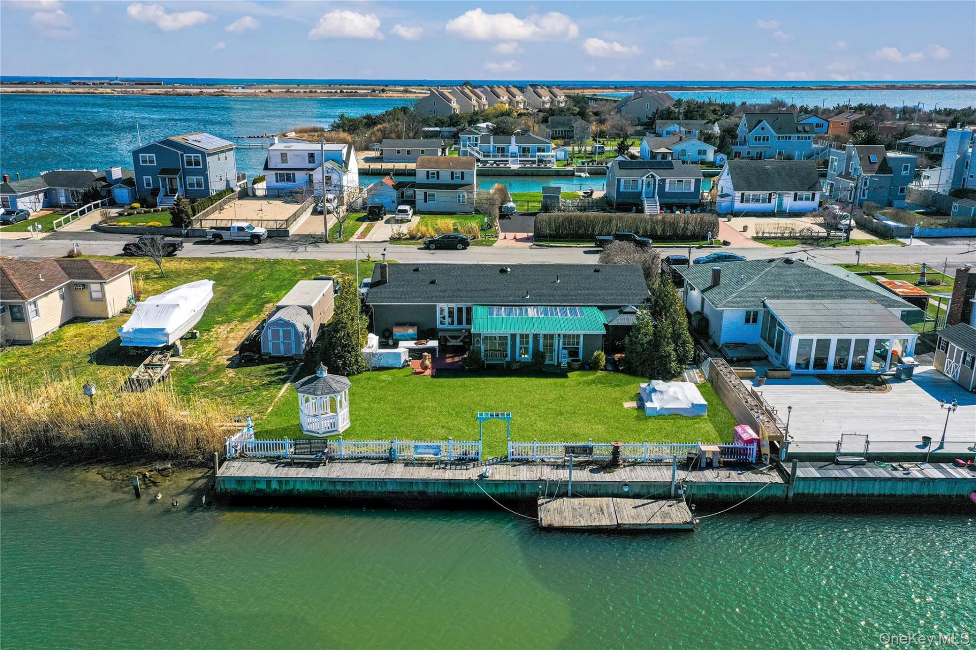 VACATION YEAR-ROUND! Affordable Waterfront opportunity at end of a wide canal at the opening of the bay. This private quiet cul-de-sac is the last block before Smiths Point Beach!!! This beautifully renovated property features an impressive 120 x 125 total lot size, including an additional 40 x 125 separate and buildable parcel-perfect for added privacy or future possibilities.Boater's dream location with a deep, wide-water canal, updated bulkhead, 8x20 floating dock and whip lines, ideal for immediate enjoyment this boating season.The home offers 3 bedrooms and 2 full baths, thoughtfully updated stunning chefs' kitchen, featuring Jenn-Air stainless steel appliances (including a 41 refrigerator), white ceramic sink with gold Kohler faucets, Pot Filler, quartz countertops, custom 8'x5' center island with wet bar and a custom slate floor. Interior highlights include 2 new baths tastefully designed with porcelain, quartz, and granite, color changing hi-hat lighting, rich hardwood flooring, Anderson windows, new architectural roof, upgraded thermostat powered by Google, Nighthawk security cameras. Custom Landscape with 8' spruce and PVC fencing. A 16'x24' 3 enclosed 3 season room with hub space lighting, 8' barn door and custom gazebo add months of outdoor enjoyment and makes for a true waterfront oasis combining location, lifestyle, and value.