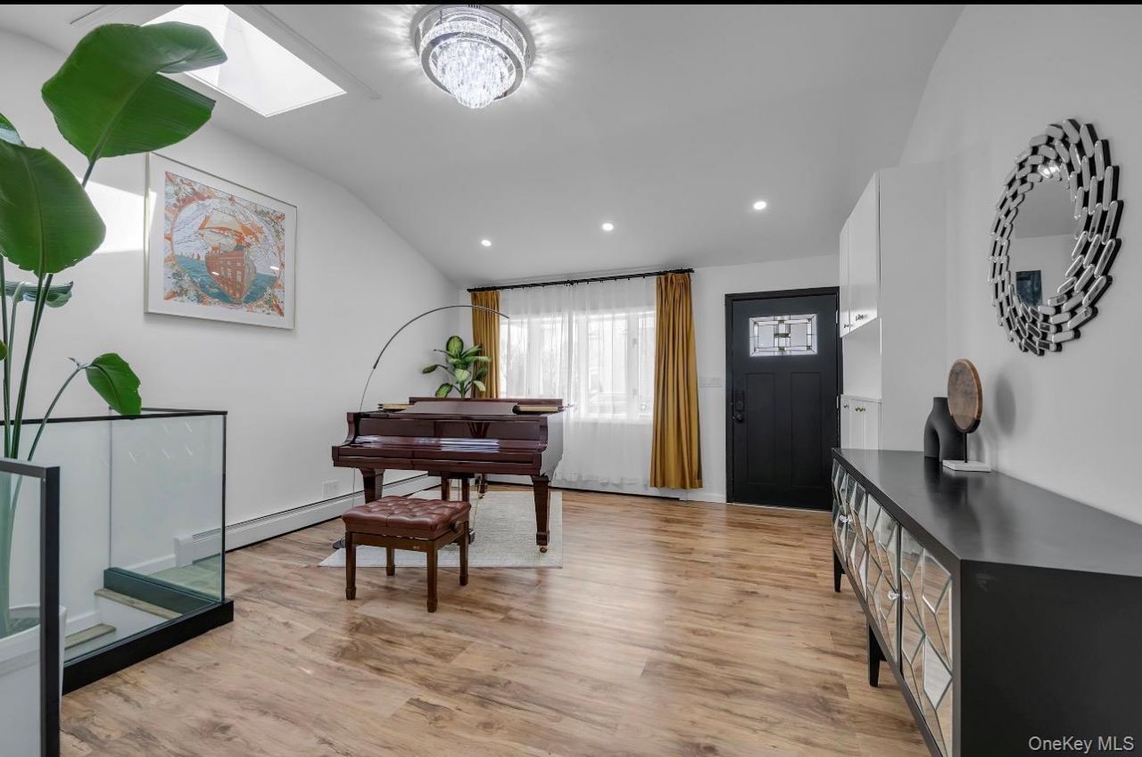 Welcome to this charming and peaceful one-story home located in a rare and highly sought-after neighborhood Top-Ranked South Grove Elementary School, H B Thompson Middle School Nestled in a Private & Serene Country Setting with Big Sky Views in the Heart of Syosset, this property offers the perfect blend of comfort and convenience. You won't want to miss this beautifully Newly Renovated 4-bedroom, 2- full bath Ranch. A custom stone & shake exterior showcases the eye-catching curb appeal of this residence. Abundant natural light, high ceilings, set the stage for this amazing home. Inside, you'll find a warm and inviting layout with generously sized rooms and effortless flow for everyday living and entertaining highlights with Eat-in Kitchen has top-of-the-line Deluxe Appliances, and a Central Island w/ Quartz countertop. This home is filled with natural light and offers 3 zones for heating. All Designer Bathrooms are fully Quartz finished, Exquisite primary bedroom feature walk-in closets and full bathroom. The fully finished Partial Basement adds exceptional bonus space, featuring a private office area and plenty of room for recreation, a playroom, or whatever best suits your lifestyle. Step outside to your own Newly Paved Front and Backyard perfect for summer entertaining, w/ it's own canopy makes the weekends more relaxing. This home blends exceptional craftsmanship with thoughtful design, making it a premier choice for those seeking luxury, amenities & convenience. Don't miss this rare opportunity to own a beautiful home.